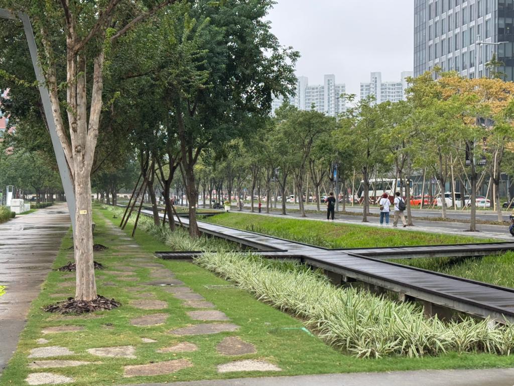 徐汇跑道公园将原龙华机场跑道转化为线性公园,设计通过材质变化暗示不同历史时期的层积,同时利用地形起伏创造丰富的空间体验。该项目展示了如何将交通基础设施转化为城市公共空间。