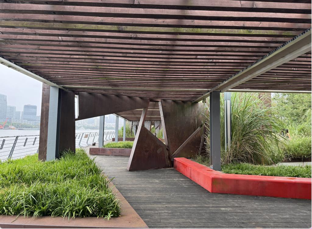 杨浦滨江的改造是景观设计治愈力量的生动体现。这里曾是上海至关重要的工业区,如今已华丽转身为市民休闲的核心场所。令人印象深刻的是,杨树浦电厂遗址公园的设计团队拒绝了简单的拆除,而是选择与历史进行深度对话:通过保留吊车轨道和输煤廊道,这些旧有设施不再是废弃物,而成了城市工业记忆的鲜活载体;同时,设计致力于生态的修复,通过植被恢复和湿地重建,让曾经污染的土地重获勃勃生机;最终,老旧的工业设施被巧妙地赋予了新的使用功能,以功能再生的方式,延续了场地的生命与活力。