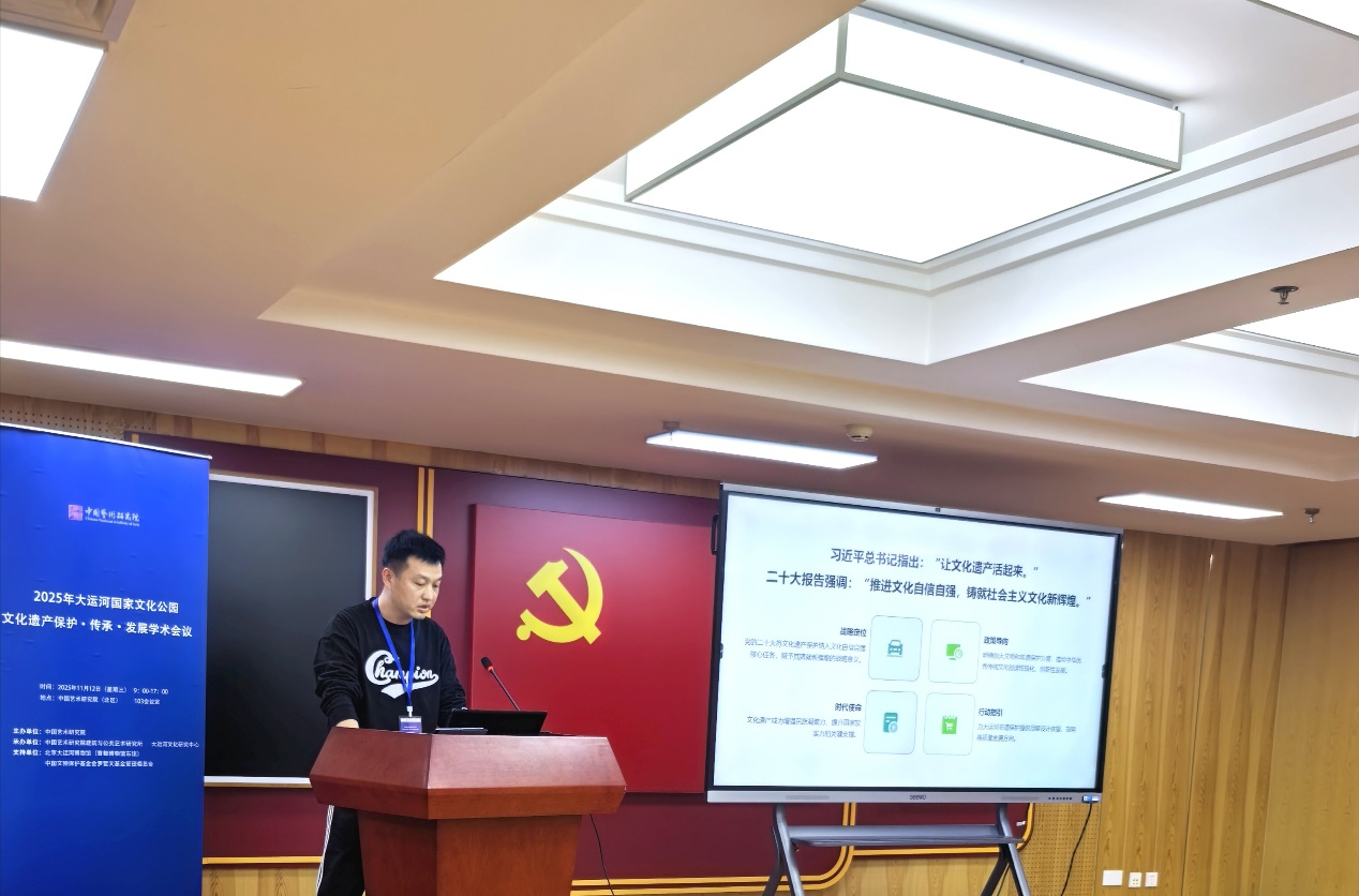 2025年11月12日,由中国艺术研究院主办,中国艺术研究院建筑与公共艺术研究所、大运河文化研究中心承办的“2025年大运河国家文化公园文化遗产保护·传承·发展学术会议”在中国艺术研究院成功举办。参加会议的有北京市文物局、中国科学院、故宫博物院、首都博物馆、中国文化遗产研究院、天津大学、北京师范大学、北京建筑大学、山东工艺美术学院、中国大运河学会、大运河国家文化公园专家咨询委员会等20余家单位的领导、专家和学者。中国非物质文化遗产保护中心副主任郝庆军、首都博物馆(含北京大运河博物馆)馆长郭京宁出席会议并致辞。