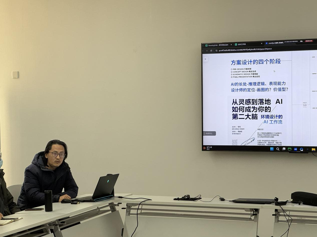 讲座中,黎明老师围绕“环境设计的AI工作流”这一核心主题,结合行业发展趋势,系统阐释了AI作为全新设计思维方式的核心内涵。他指出,在人工智能迅速重塑设计行业的当下,AI已不再是简单的辅助工具,而是能够深度参与分析、辅助构思、推敲方案并强化表达的“设计伙伴”,可有效将重复劳动转化为创造力的空间。