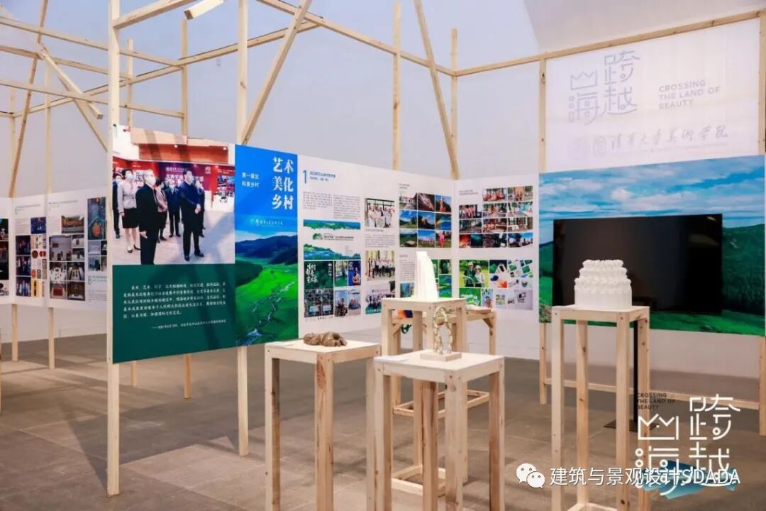 “跨越山海——全国高校乡村艺术建设成果展览”由乡村建设高校联盟主办,乡村建设高校联盟“乡村艺术建设专项委员会”和清华大学美术学院承办。展览展出了来自全国各地18所院校的乡村艺术建设实践成果,旨在促进全国高校及相关单位在乡村艺术建设领域的交流合作,激发乡村“向美而行”的内生动力,推动乡村艺术建设在全社会的普及和认同。为推动乡村艺术建设事业的跨学科良性互动、理论与实践的相互促进、城市与乡村的统筹发展提供动力,为建构中国乡村艺术教育体系、理论体系和话语体系贡献力量。