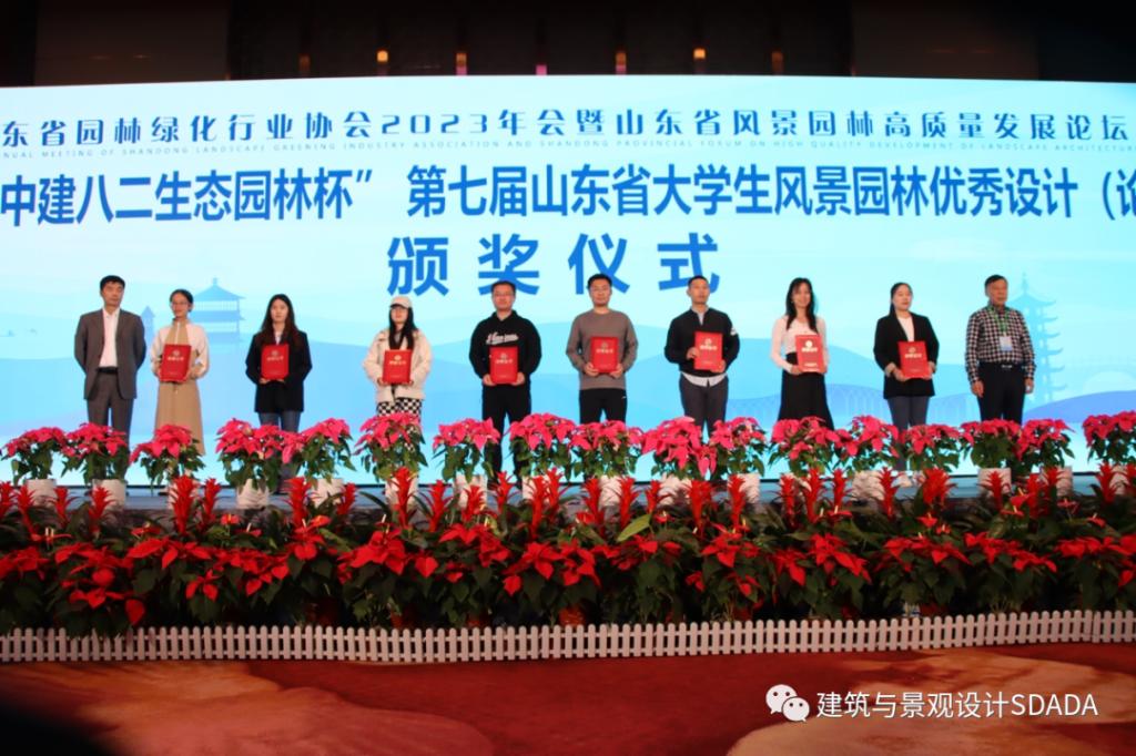 闭幕式的颁奖仪式环节中,我校风景园林专业和景观设计专业荣揽“中建八二生态园林杯”第七届山东省大学生风景园林优秀设计(论文)大赛本科生组及研究生组的课程设计、毕业设计、毕业论文等类别的一、二、三等奖共20余项,曹灿景、吕桂菊、石琳等教师获优秀指导教师奖。