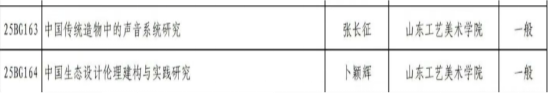 近日,文化和旅游部科技教育司、全国艺术科学规划领导小组办公室下发立项通知,正式公布了2025年国家社科基金艺术学年度项目立项名单。山东工艺美术学院张长征教授申报的《中国传统造物中的声音系统研究》、卜颖辉副教授申报的《中国生态设计伦理建构与实践研究》顺利获批一般项目。