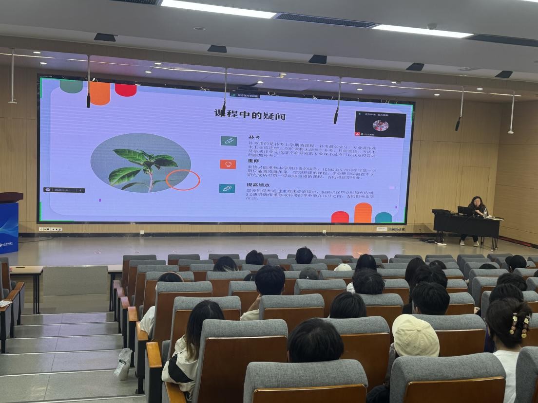大会伊始,教学秘书路滨西老师围绕毕业季学业核心问题展开详细讲解。她结合学院教学管理要求,逐一梳理了毕业生需完成的核心学业任务:从课程学分认定、未通过课程补考及重修安排,到如何提高绩点,再到公共选修课和交叉课的认定标准,每一项内容都有具体的细则要求。路老师特别强调,一定要认真对待自己的学业问题,关注每项工作的时间节点,不要错过班级群的通知,及时做好时间规划确保每位同学都能顺利毕业。