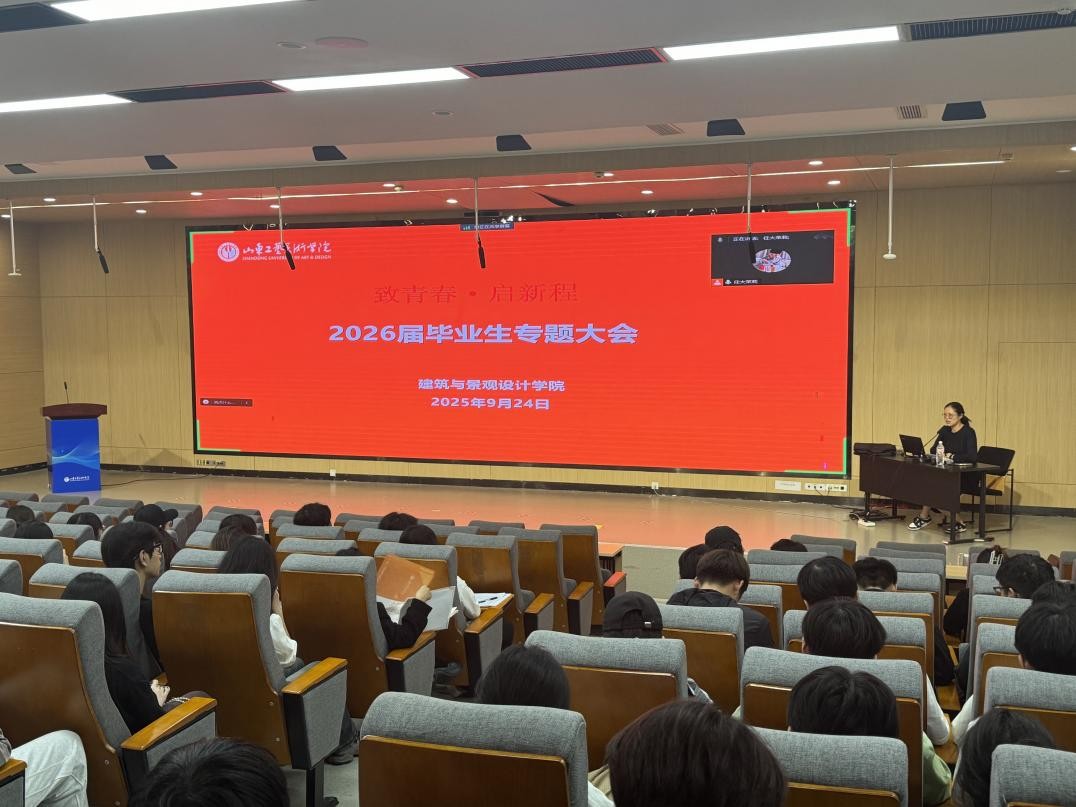 为切实做好毕业年级学生学业收尾、就业冲刺及毕业手续办理等工作,帮助学生明晰毕业季各项任务要求,9月24日,建筑与景观设计学院在第一阶梯教师召开毕业年级专题指导大会。教学秘书路滨西老师、毕业年级辅导员任玉芳老师及全体毕业年级学生参加会议。
