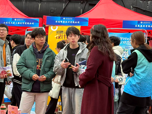 本次双选会共吸引来自全国80家优质企业参与,企业围绕毕业生专业方向,精准提供了600个优质岗位,工作地点覆盖济南、青岛、杭州等多个城市,为学子们带来了多元化的就业选择。作为本次双选会的创新亮点,“AI数智就业专区”的设置,精准对接艺术设计与数字技术融合的行业趋势,成为现场关注度最高的区域之一。